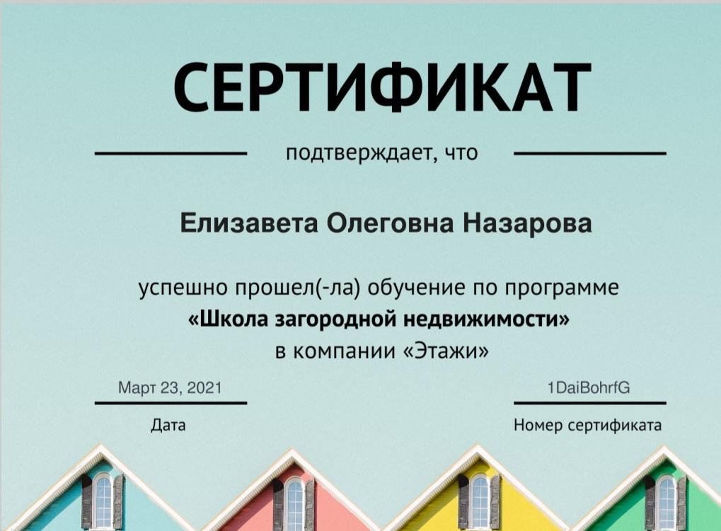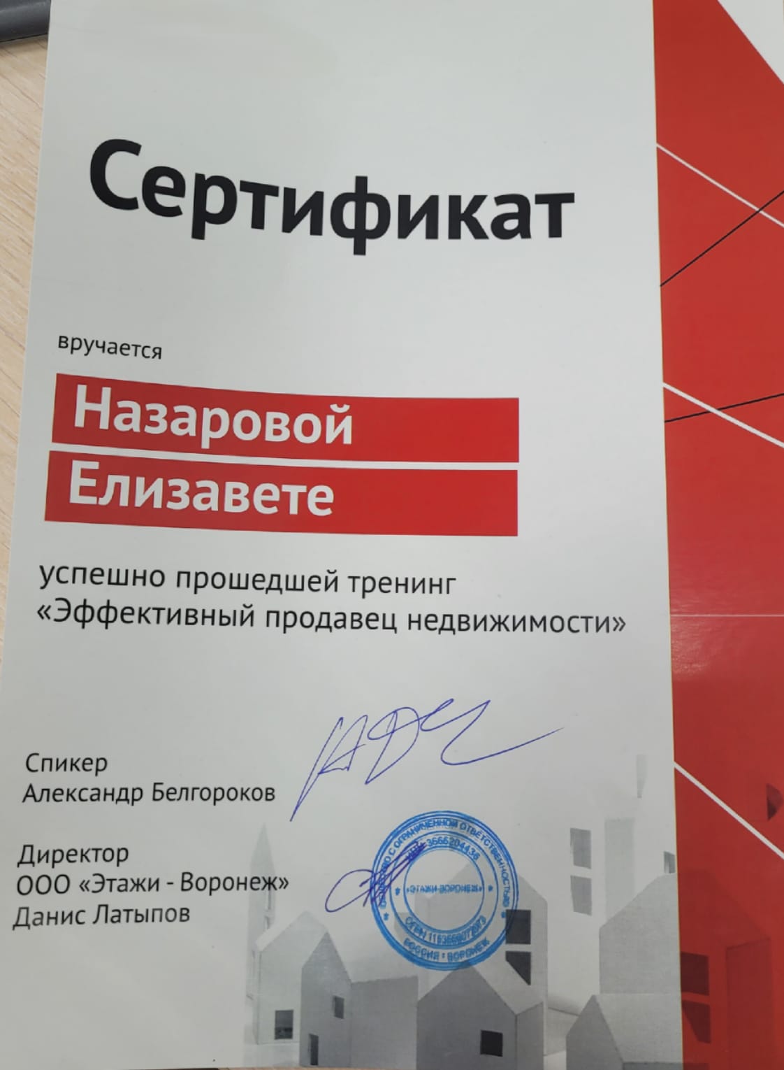 Спасибо большое Елезавете Олеговне Назаровой, за успешную работу, за оформление, грамотный подход и оформление сделки! Огромное спасибо!