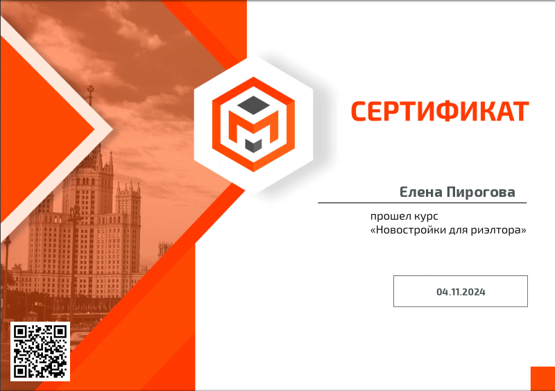 Елена, большое спасибо за ваше профессиональное сопровождение сделки. Ваши экспертные знания, внимательность к деталям и умение находить оптимальные решения сделали этот процесс максимально комфортным и безопасным. При необходимости, надеюсь на дальнейшее сотрудничество) Спасибо еще раз!