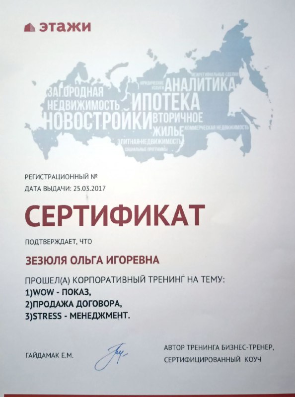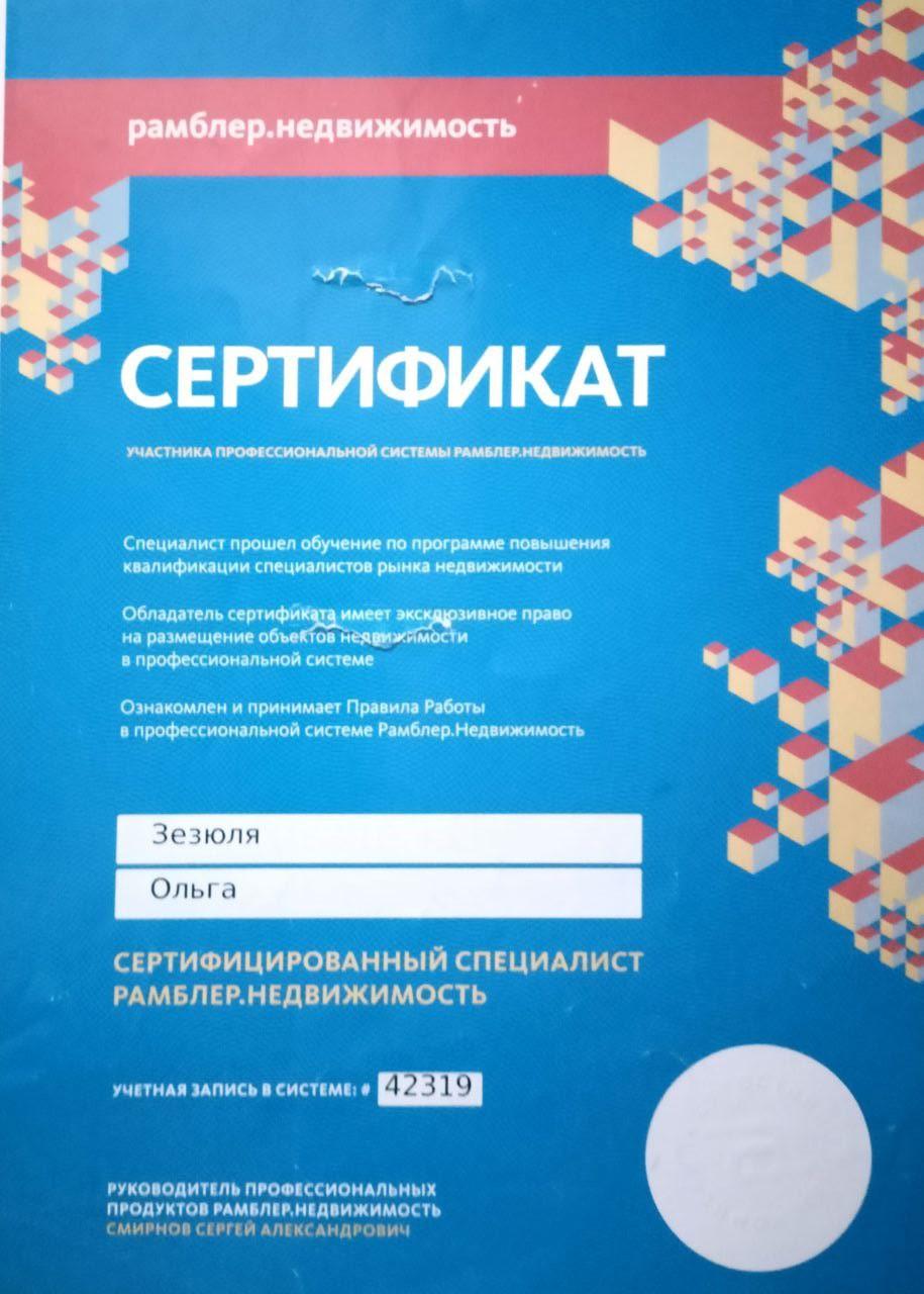 Спасибо большое Ольге Зезюле за помощь в продаже квартиры. Сделку провела быстро и грамотно. До неё двух риэлторов поменяли, а она нашла подход все решила. Спасибо большое.